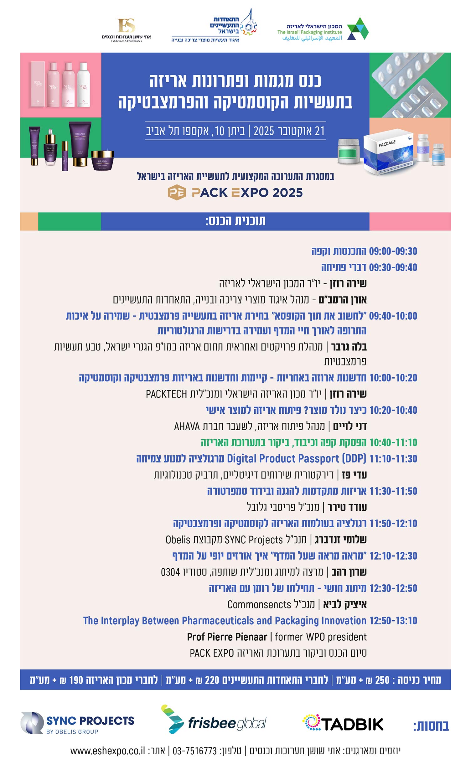 כנס אריזה 2025 מספר המקומות מוגבל! שריין מקומך בהקדם להרשמה לחץ צור קשר 054-5602006 | 03-7516773 ettyesh@gmail.com תפריט דף הבית SUBCON Israel SUBMED INDUSTRIAL AUTOMATION PACK EXPO אודות השירותים שלנו גלריה צור קשר